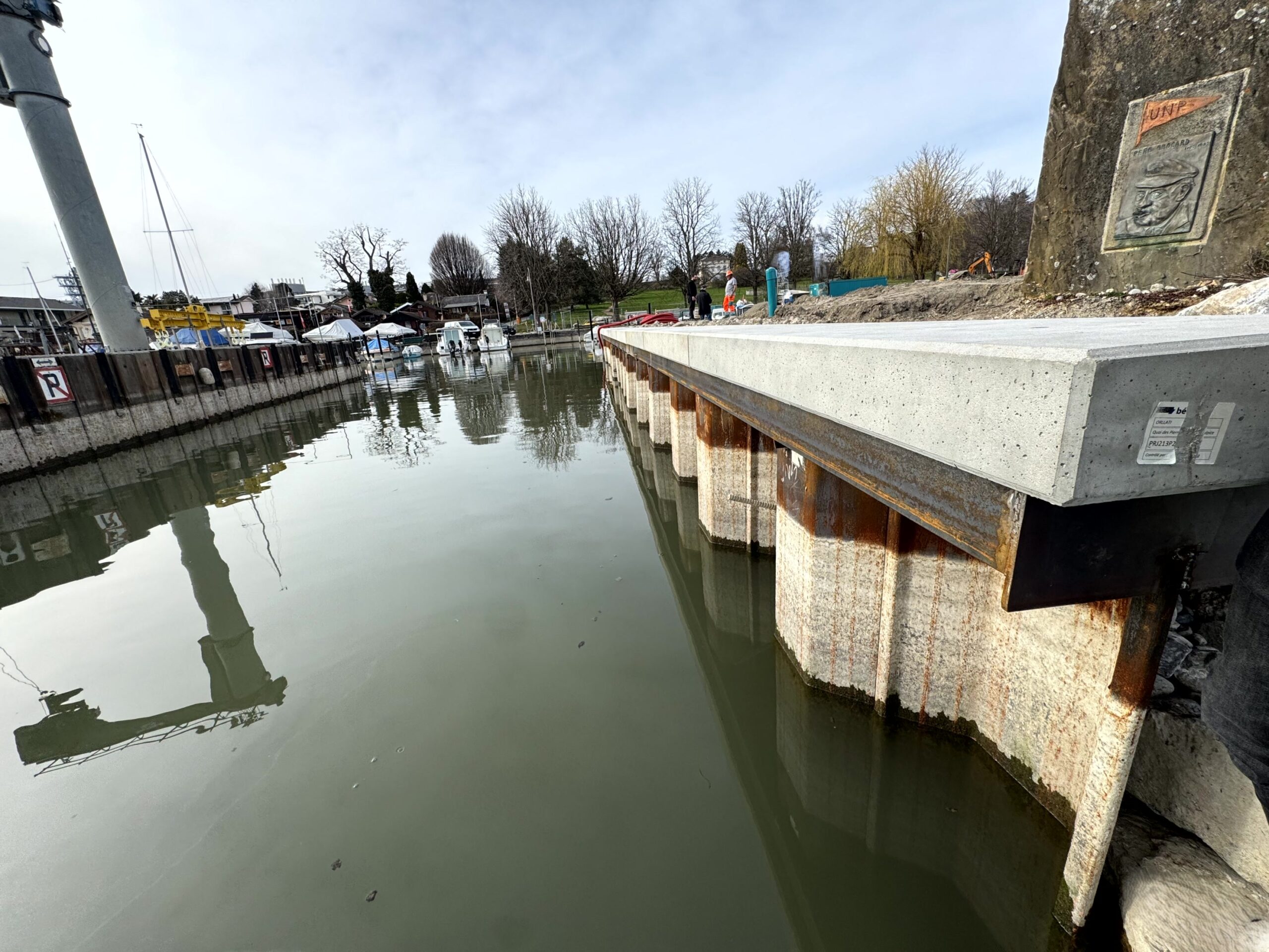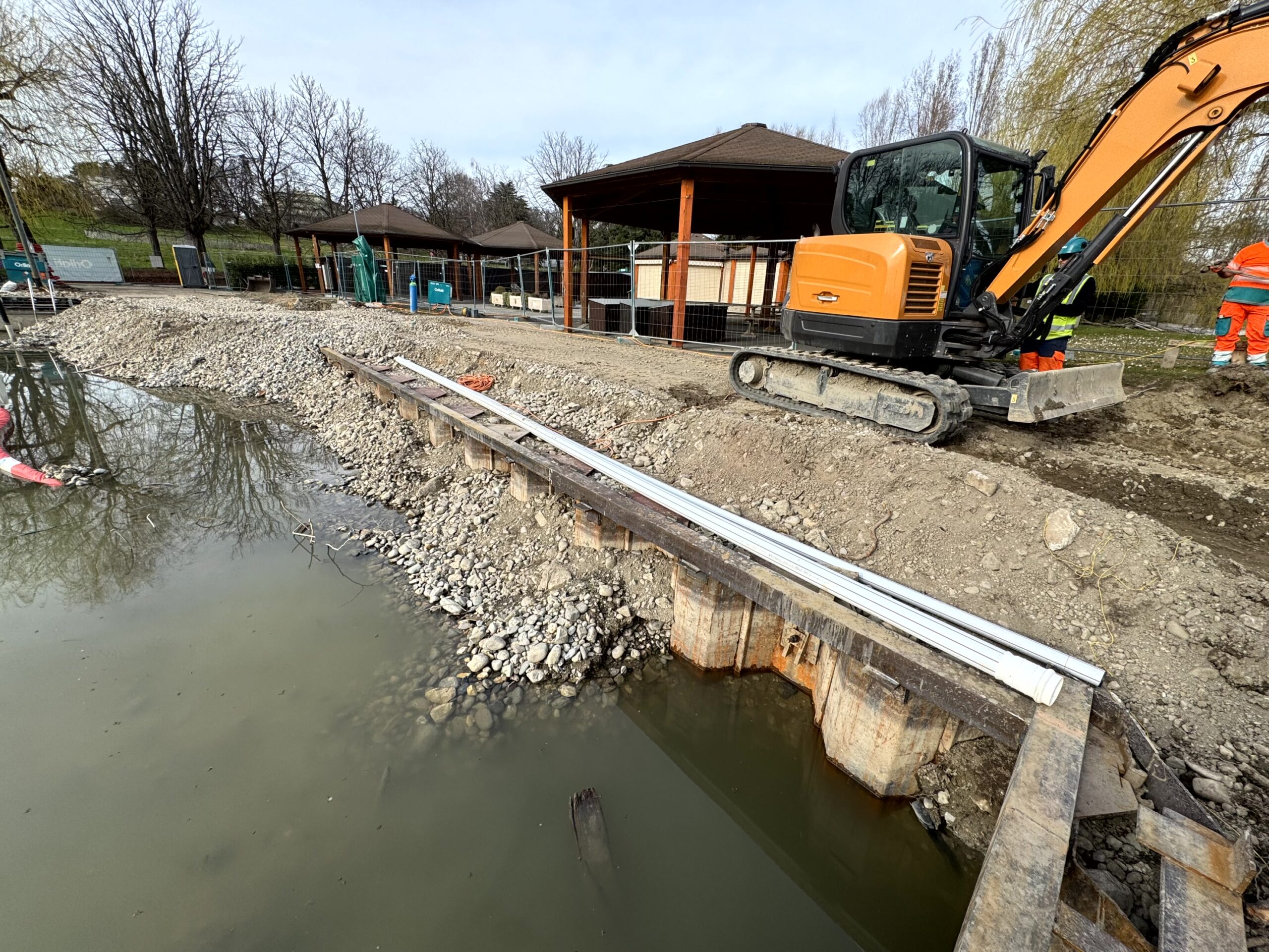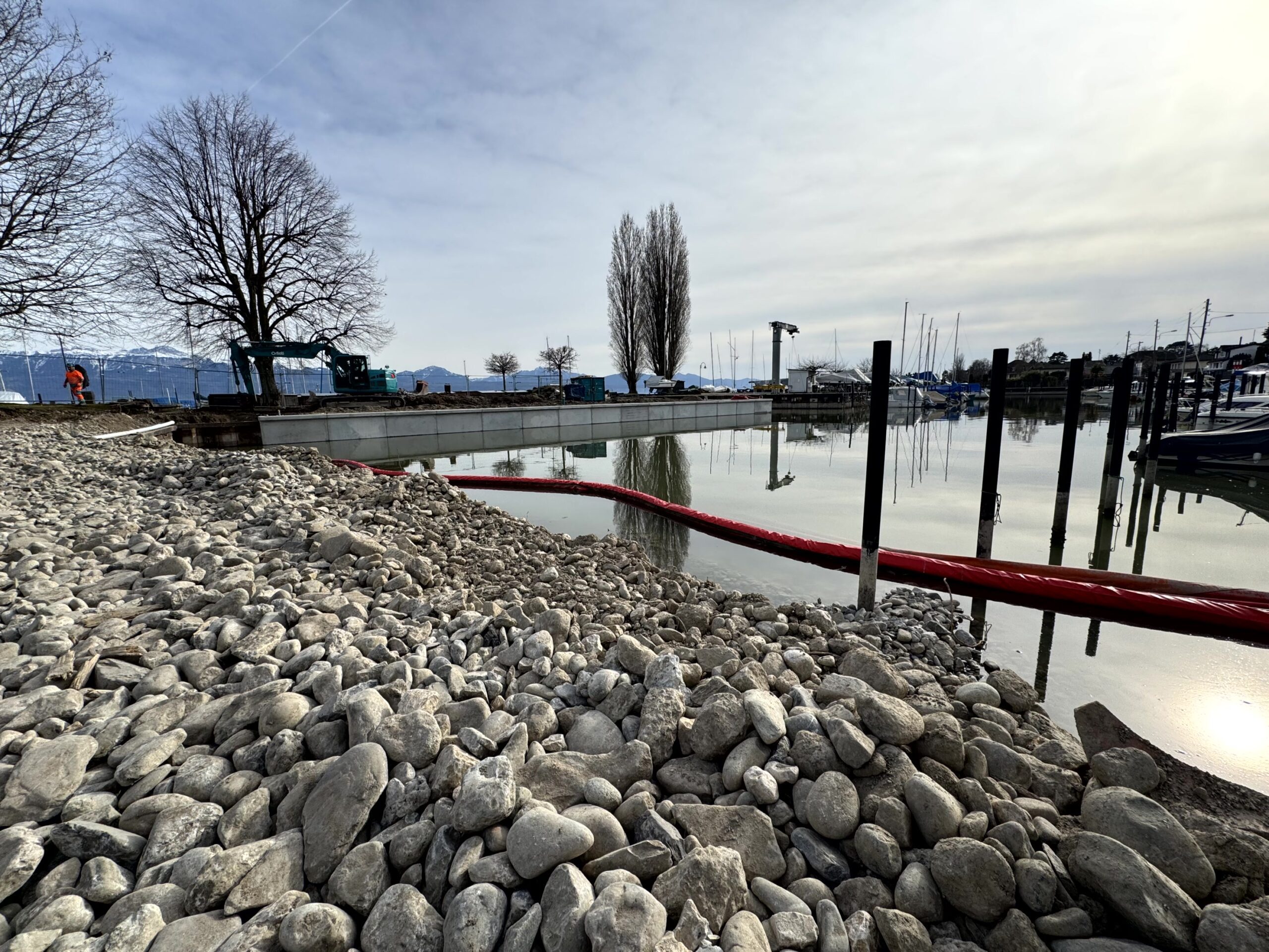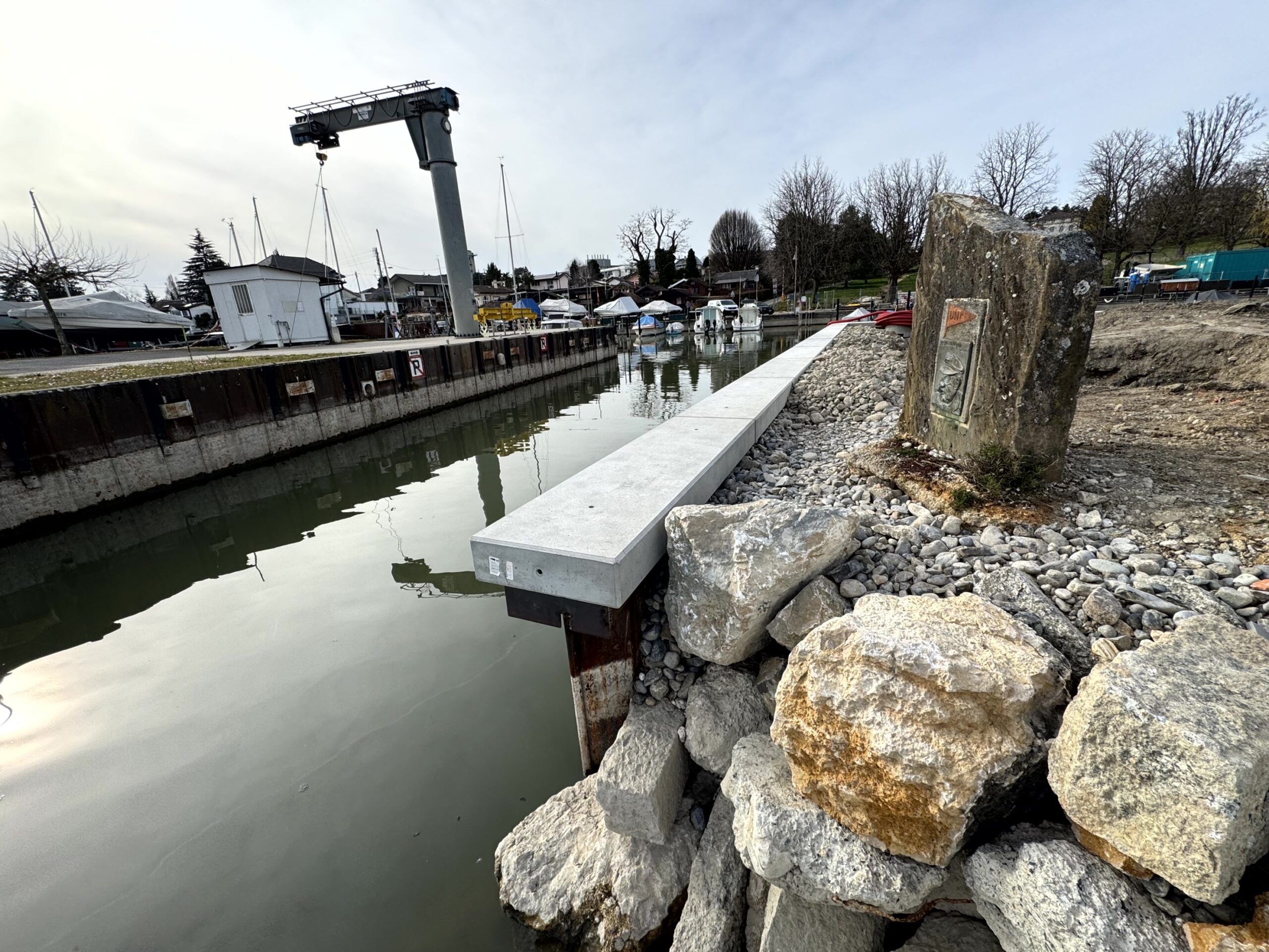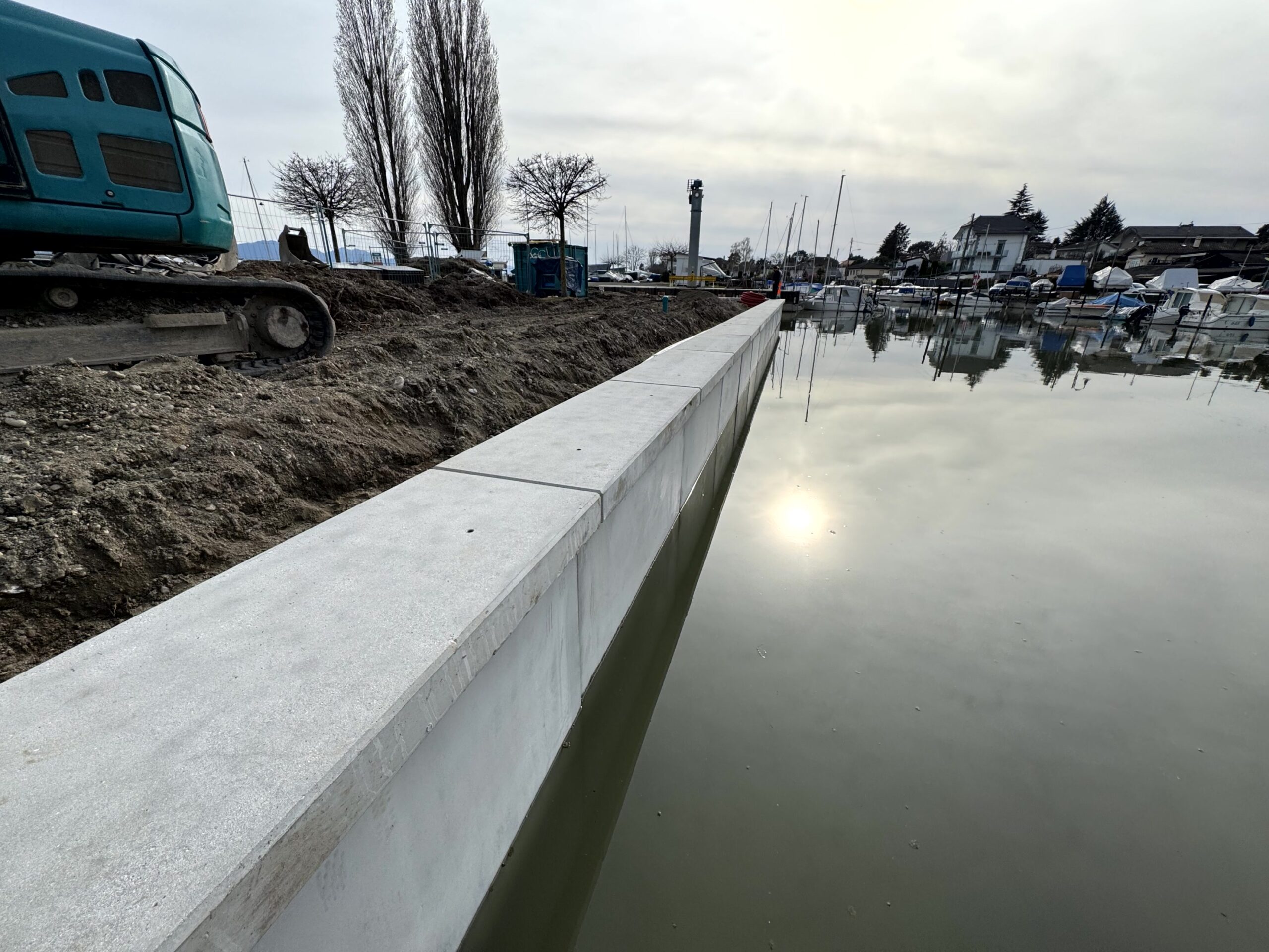 Le projet portait sur le renforcement des berges et la remise en état des quais du côté est du port des Pierrettes à Saint-Sulpice. Le bureau 9.81 réalise les prestations d’ingénierie civile en collaboration avec le bureau De Cérenville Géotechnique. L’intervention consiste en la mise en œuvre d’éléments préfabriqués en béton armé formant une longrine en tête d’un rideau de palplanches, assurant la stabilité et la fonctionnalité du quai piéton. La conception et l’exécution de ces travaux lacustres ont exigé une grande précision, notamment pour l’interface entre les éléments préfabriqués et les palplanches, ainsi que pour le respect des tolérances géométriques et altimétriques des éléments préfabriqués.
